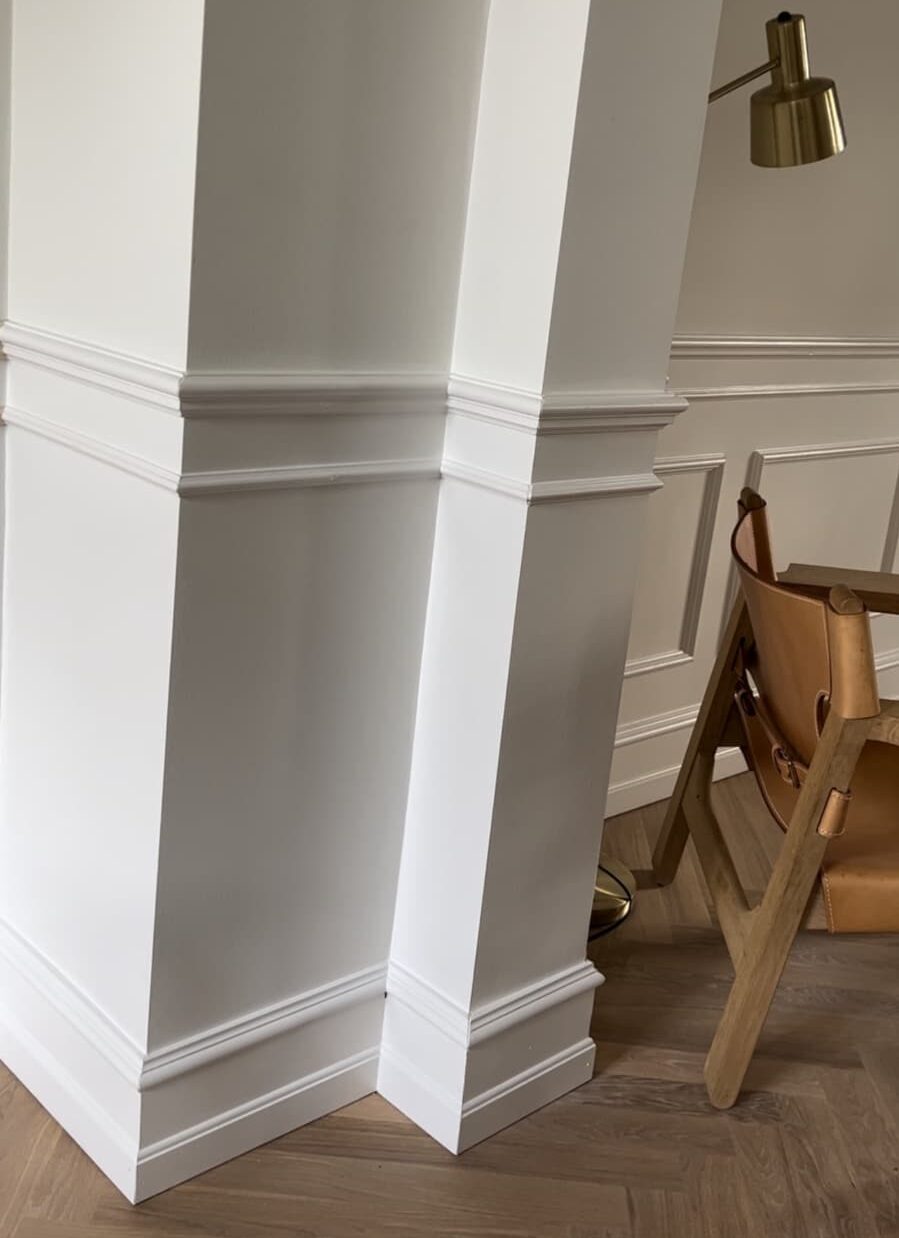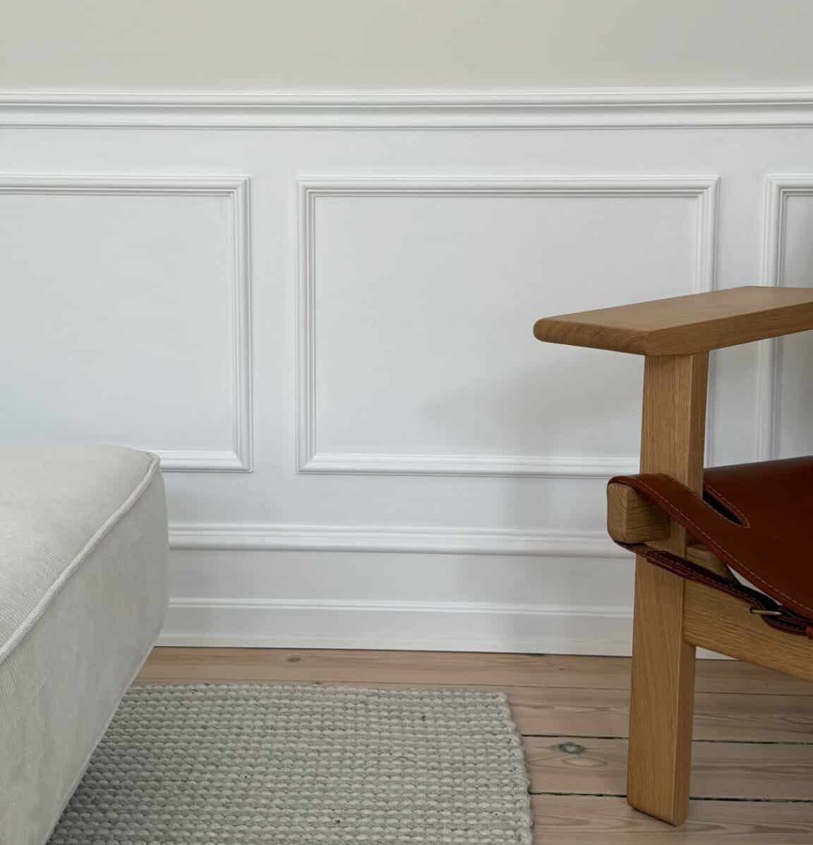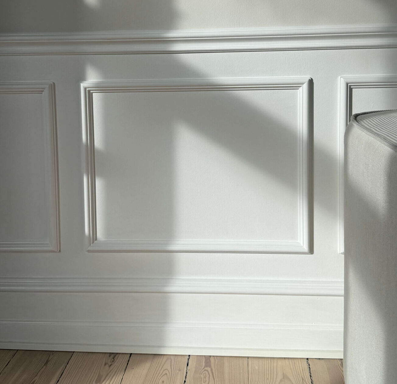 Den markante Kornbakkeliste kan bruges som fodliste på en væg helt uden pyntelister, eller som afslutning mod gulvet på dit høje panel.